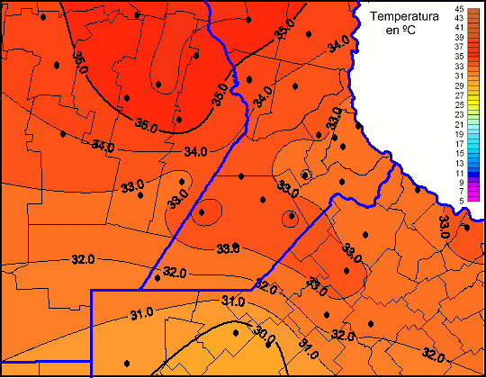 Mapa de temperaturas máximas de las las últimas 24 horas.