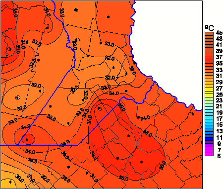 Mapa de temperaturas máximas de las las últimas 24 horas.