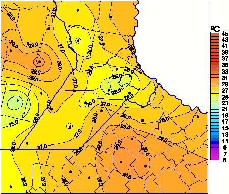 Mapa de temperaturas máximas de las las últimas 24 horas.