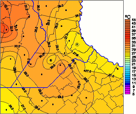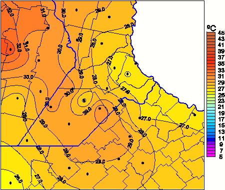 Mapa de temperaturas máximas de las las últimas 96 horas.