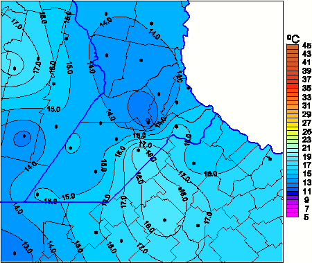 Mapa de temperaturas máximas de las las últimas 96 horas.(Desde las 8:00AM hasta las 8:00AM). Se actualiza a las 10:00hs.