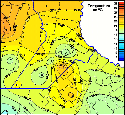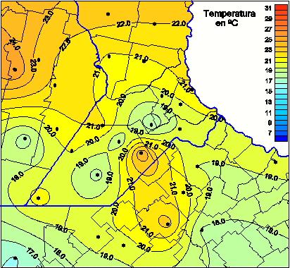 Mapa de temperaturas máximas de las las últimas 96 horas.(Desde las 8:00AM hasta las 8:00AM). Se actualiza a las 10:00hs.