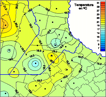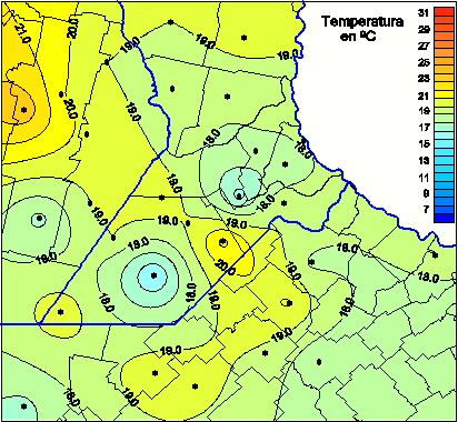 Mapa de temperaturas máximas de las las últimas 72 horas.(Desde las 8:00AM hasta las 8:00AM). Se actualiza a las 10:00hs.