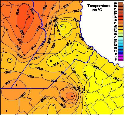Mapa de temperaturas máximas de las las últimas 96 horas.