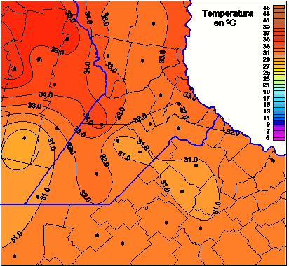 Mapa de temperaturas máximas de las las últimas 24 horas.