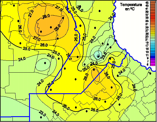 Mapa de temperaturas máximas de las las últimas 96 horas.