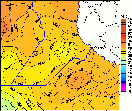 Mapa de temperaturas máximas de las las últimas 72 horas.(Desde las 8:00AM hasta las 8:00AM). Se actualiza a las 10:00hs.