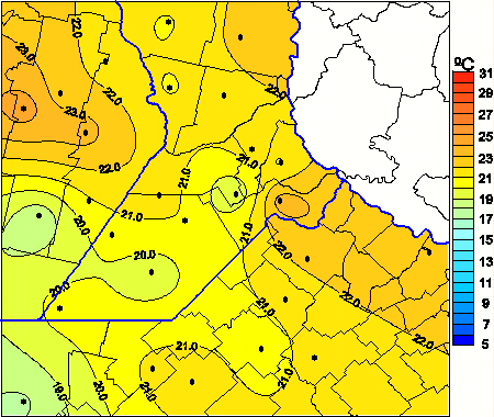 Mapa de temperaturas máximas de las las últimas 96 horas.