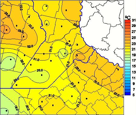 Mapa de temperaturas máximas de las las últimas 96 horas.(Desde las 8:00AM hasta las 8:00AM). Se actualiza a las 10:00hs.