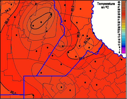Mapa de temperaturas máximas de las las últimas 24 horas.