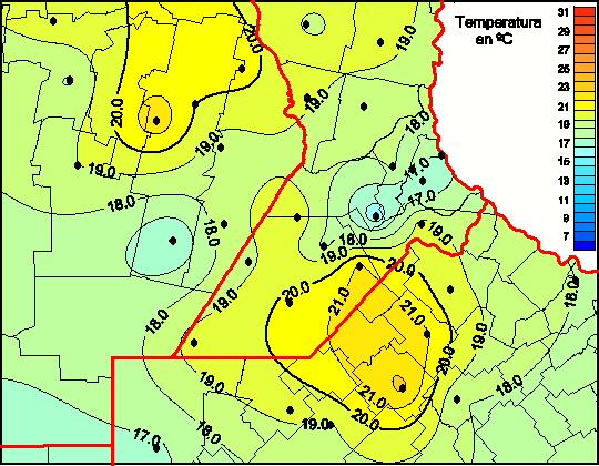Mapa de temperaturas medias de las las últimas 72 horas.(Desde las 8:00AM hasta las 8:00AM). Se actualiza a las 10:00hs.