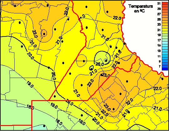 Mapa de temperaturas medias de las las últimas 48 horas.(Desde las 8:00AM hasta las 8:00AM). Se actualiza a las 10:00hs.