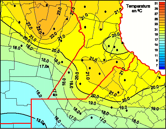Mapa de temperaturas medias de las las últimas 72 horas.