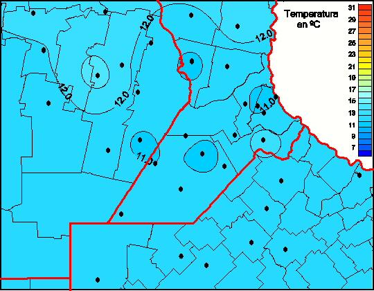 Mapa de temperaturas medias de las las últimas 72 horas.(Desde las 8:00AM hasta las 8:00AM). Se actualiza a las 10:00hs.