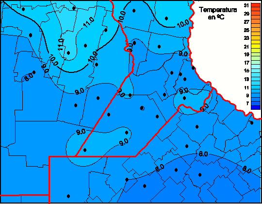 Mapa de temperaturas medias de las las últimas 72 horas.