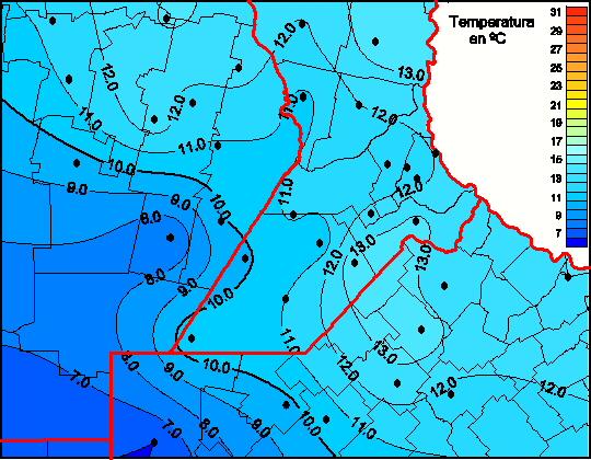 Mapa de temperaturas medias de las las últimas 96 horas.(Desde las 8:00AM hasta las 8:00AM). Se actualiza a las 10:00hs.