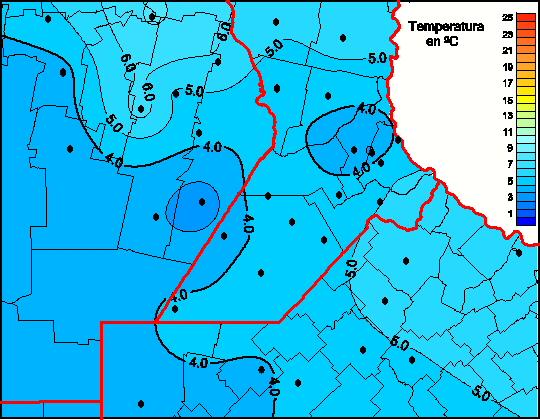 Mapa de temperaturas medias de las las últimas 72 horas.