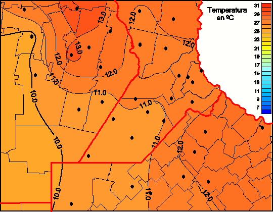 Mapa de temperaturas medias de las las últimas 72 horas.(Desde las 8:00AM hasta las 8:00AM). Se actualiza a las 10:00hs.