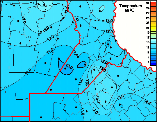 Mapa de temperaturas medias de las las últimas 72 horas.(Desde las 8:00AM hasta las 8:00AM). Se actualiza a las 10:00hs.
