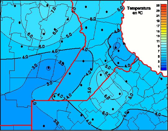 Mapa de temperaturas medias de las las últimas 96 horas.(Desde las 8:00AM hasta las 8:00AM). Se actualiza a las 10:00hs.