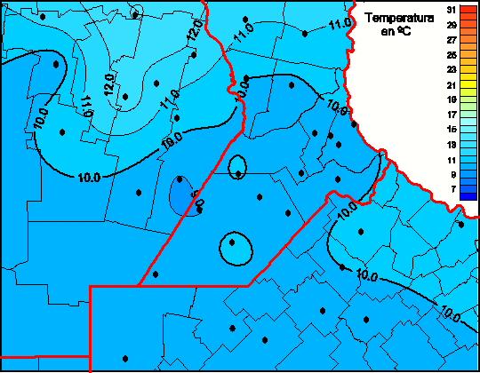 Mapa de temperaturas medias de las las últimas 72 horas.