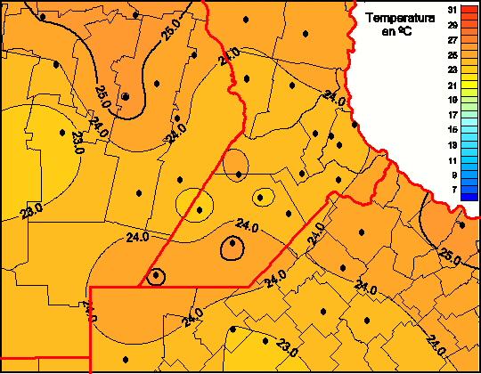 Mapa de temperaturas medias de las las últimas 96 horas.(Desde las 8:00AM hasta las 8:00AM). Se actualiza a las 10:00hs.