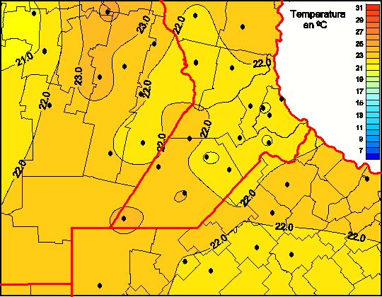 Mapa de temperaturas medias de las las últimas 72 horas.