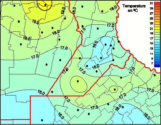 Mapa de temperaturas medias de las las últimas 72 horas.
