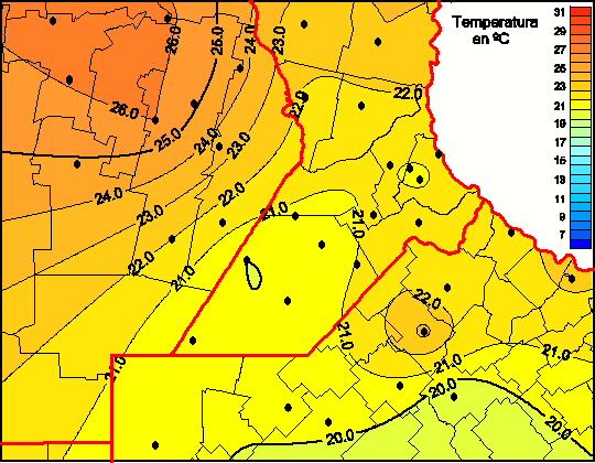 Mapa de temperaturas medias de las las últimas 96 horas.(Desde las 8:00AM hasta las 8:00AM). Se actualiza a las 10:00hs.