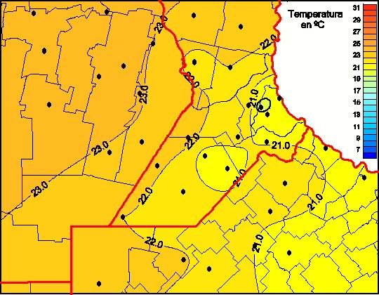 Mapa de temperaturas medias de las las últimas 72 horas.(Desde las 8:00AM hasta las 8:00AM). Se actualiza a las 10:00hs.