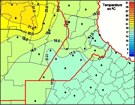 Mapa de temperaturas medias de las las últimas 72 horas.