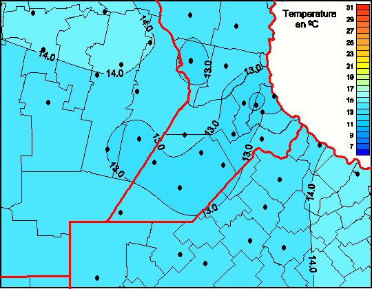Mapa de temperaturas medias de las las últimas 72 horas.(Desde las 8:00AM hasta las 8:00AM). Se actualiza a las 10:00hs.