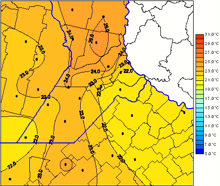 Mapa de temperaturas medias de las las últimas 96 horas.(Desde las 8:00AM hasta las 8:00AM). Se actualiza a las 10:00hs.