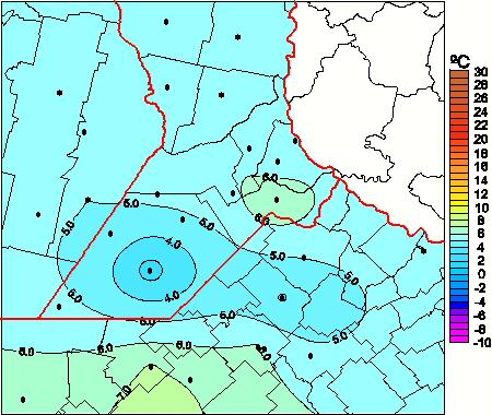 Mapa de temperaturas medias de las las últimas 0 horas.(Desde las 8:00AM hasta las 8:00AM). Se actualiza a las 10:00hs.
