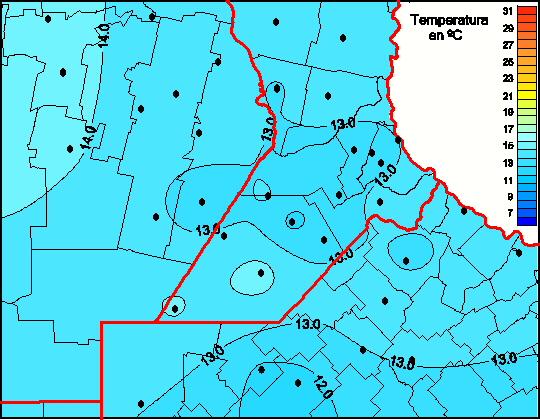 Mapa de temperaturas medias de las las últimas 0 horas.(Desde las 8:00AM hasta las 8:00AM). Se actualiza a las 10:00hs.