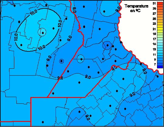 Mapa de temperaturas medias de las las últimas 72 horas.(Desde las 8:00AM hasta las 8:00AM). Se actualiza a las 10:00hs.