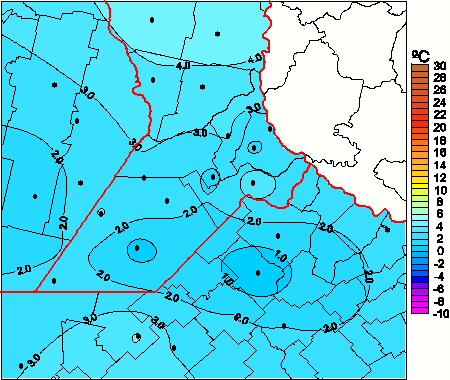 Mapa de temperaturas medias de las las últimas 72 horas.