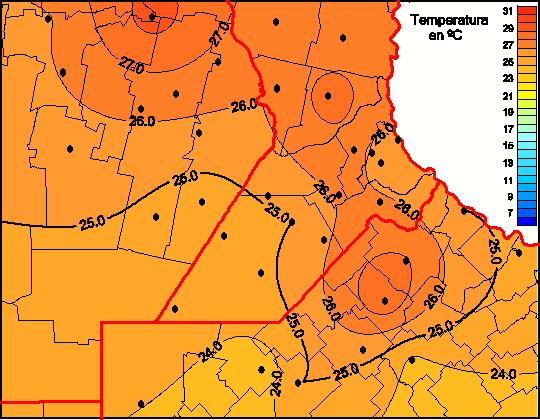 Mapa de temperaturas medias de las las últimas 72 horas.(Desde las 8:00AM hasta las 8:00AM). Se actualiza a las 10:00hs.