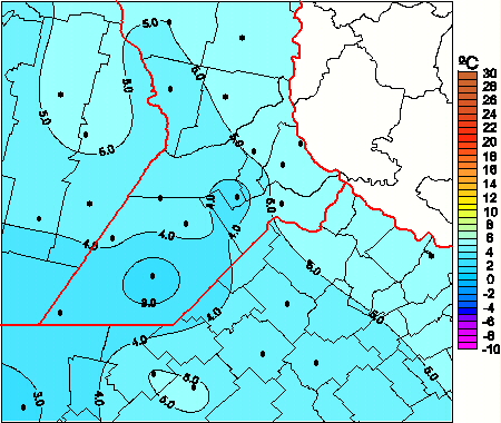 Mapa de temperaturas medias de las las últimas 96 horas.(Desde las 8:00AM hasta las 8:00AM). Se actualiza a las 10:00hs.