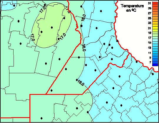 Mapa de temperaturas medias de las las últimas 96 horas.(Desde las 8:00AM hasta las 8:00AM). Se actualiza a las 10:00hs.