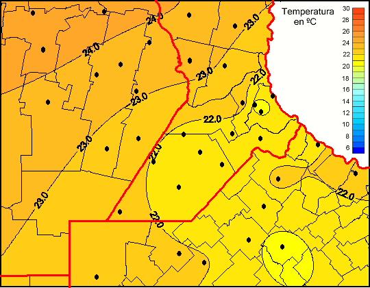 Mapa de temperaturas medias de las las últimas 72 horas.