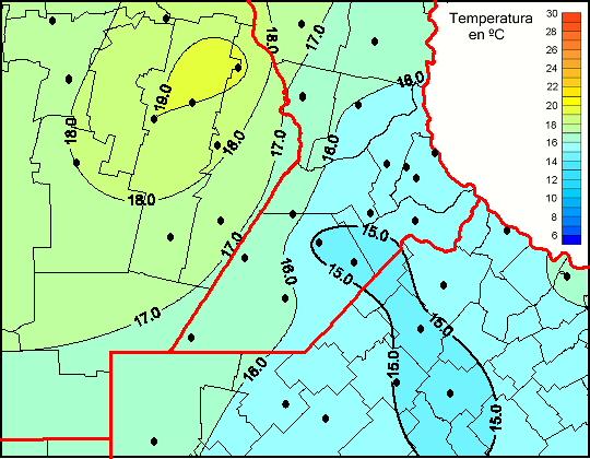 Mapa de temperaturas medias de las las últimas 96 horas.(Desde las 8:00AM hasta las 8:00AM). Se actualiza a las 10:00hs.