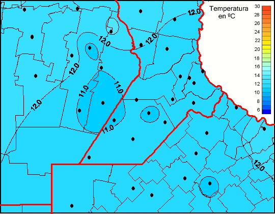 Mapa de temperaturas medias de las las últimas 48 horas.(Desde las 8:00AM hasta las 8:00AM). Se actualiza a las 10:00hs.