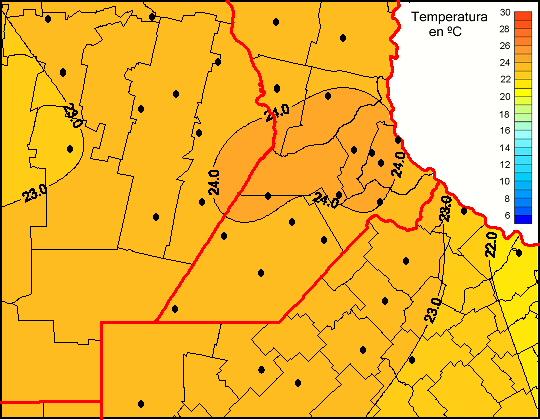 Mapa de temperaturas medias de las las últimas 72 horas.