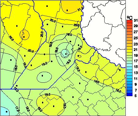 Mapa de temperaturas medias de las las últimas 72 horas.