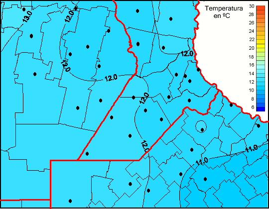 Mapa de temperaturas medias de las las últimas 72 horas.(Desde las 8:00AM hasta las 8:00AM). Se actualiza a las 10:00hs.