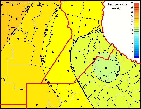 Mapa de temperaturas medias de las las últimas 72 horas.