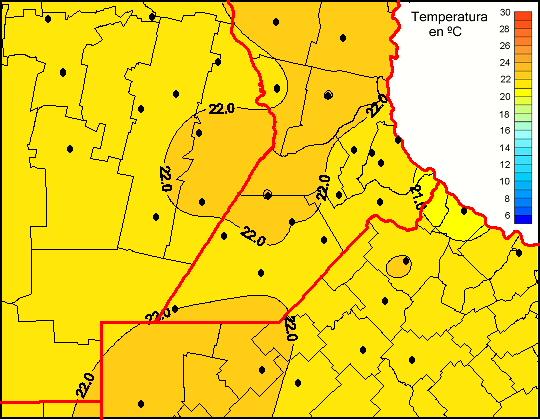 Mapa de temperaturas medias de las las últimas 96 horas.(Desde las 8:00AM hasta las 8:00AM). Se actualiza a las 10:00hs.