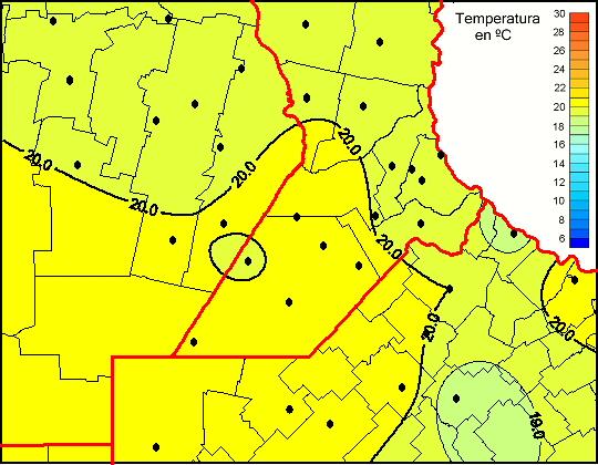 Mapa de temperaturas medias de las las últimas 72 horas.(Desde las 8:00AM hasta las 8:00AM). Se actualiza a las 10:00hs.