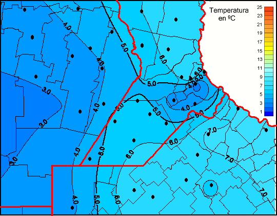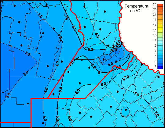 Mapa de temperaturas medias de las las últimas 48 horas.(Desde las 8:00AM hasta las 8:00AM). Se actualiza a las 10:00hs.